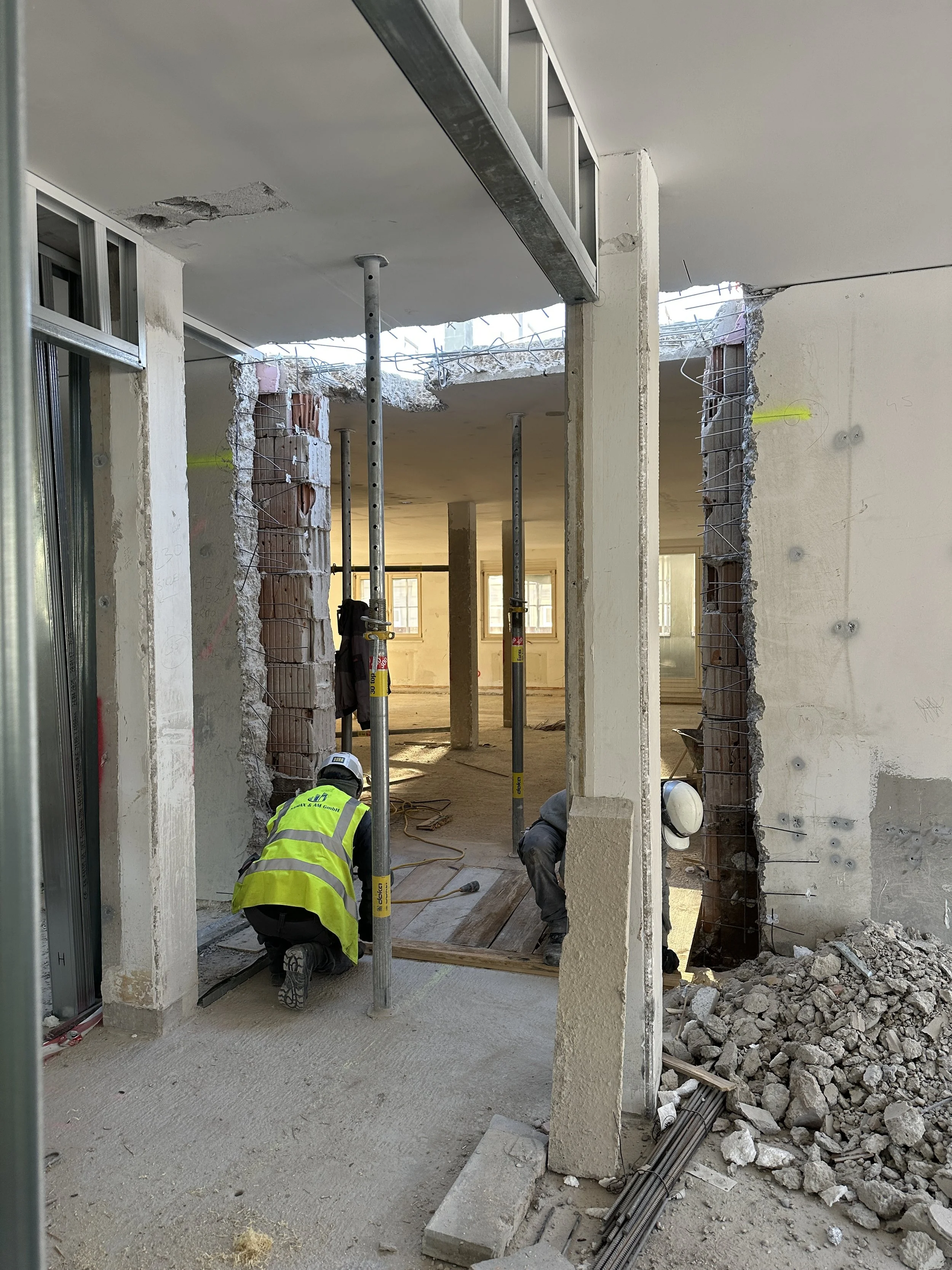 Der erste Durchbruch … Mar 15 Written By b t …für die Anbindung des Aufstockungsneubaus mit dem zu renovierenden Bürogebäude der Caritas in Wien. b t